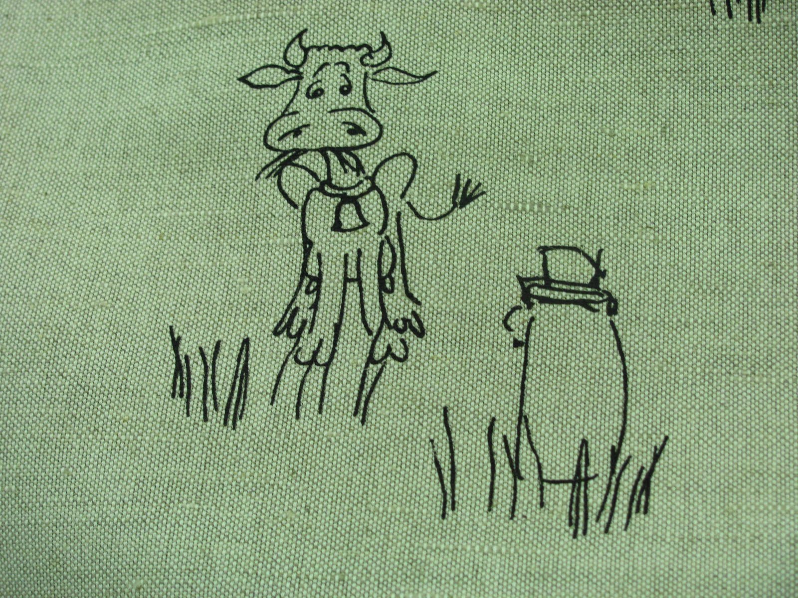 2. Vilka fina tyger du fått in!!! Kossan är bara för härlig, den skulle passa min svärfar alldeles ypperligt. ;) Hoppas du har många böcker, jag är intresserad.