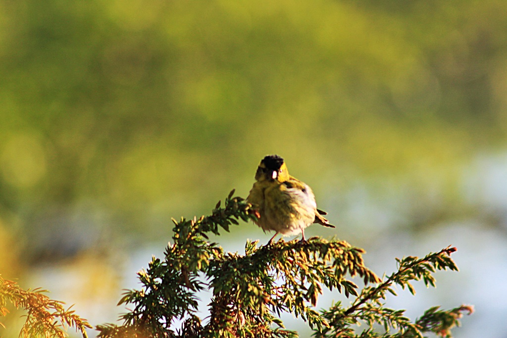 | på kvällen satt några små fåglar i enbusken vid stranden |