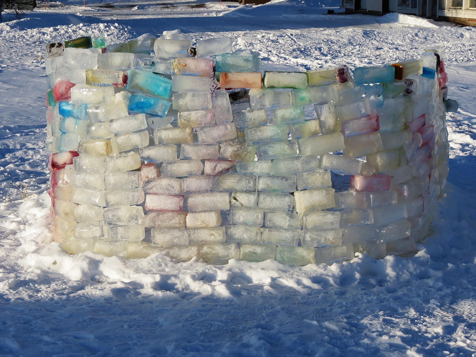 Ett is slott byggdes mitt i byn även om solen ville annat den veckan